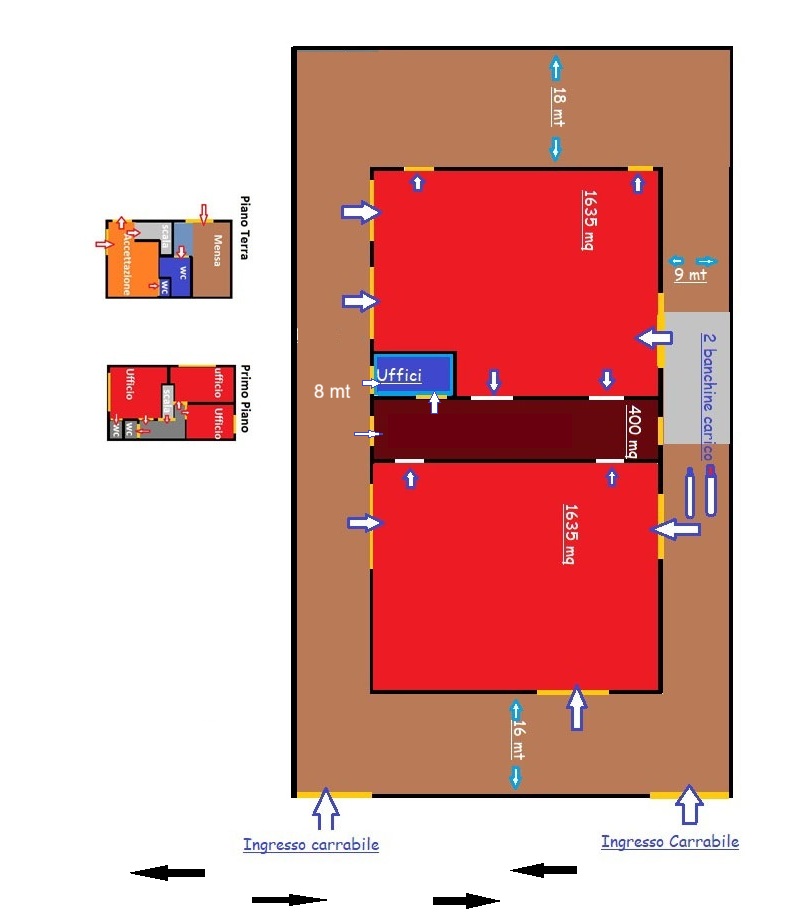 Con un terreno di circa 8000 mq, la superficie coperta si estende su 3600 mq, suddivisa in due ampi capannoni di 1600 mq ciascuno, perfettamente collegati da un deposito di 400 mq. Immagina di avere a disposizione un grande spazio ben organizzato, che ti permette di pianificare al meglio le tue esigenze operative!